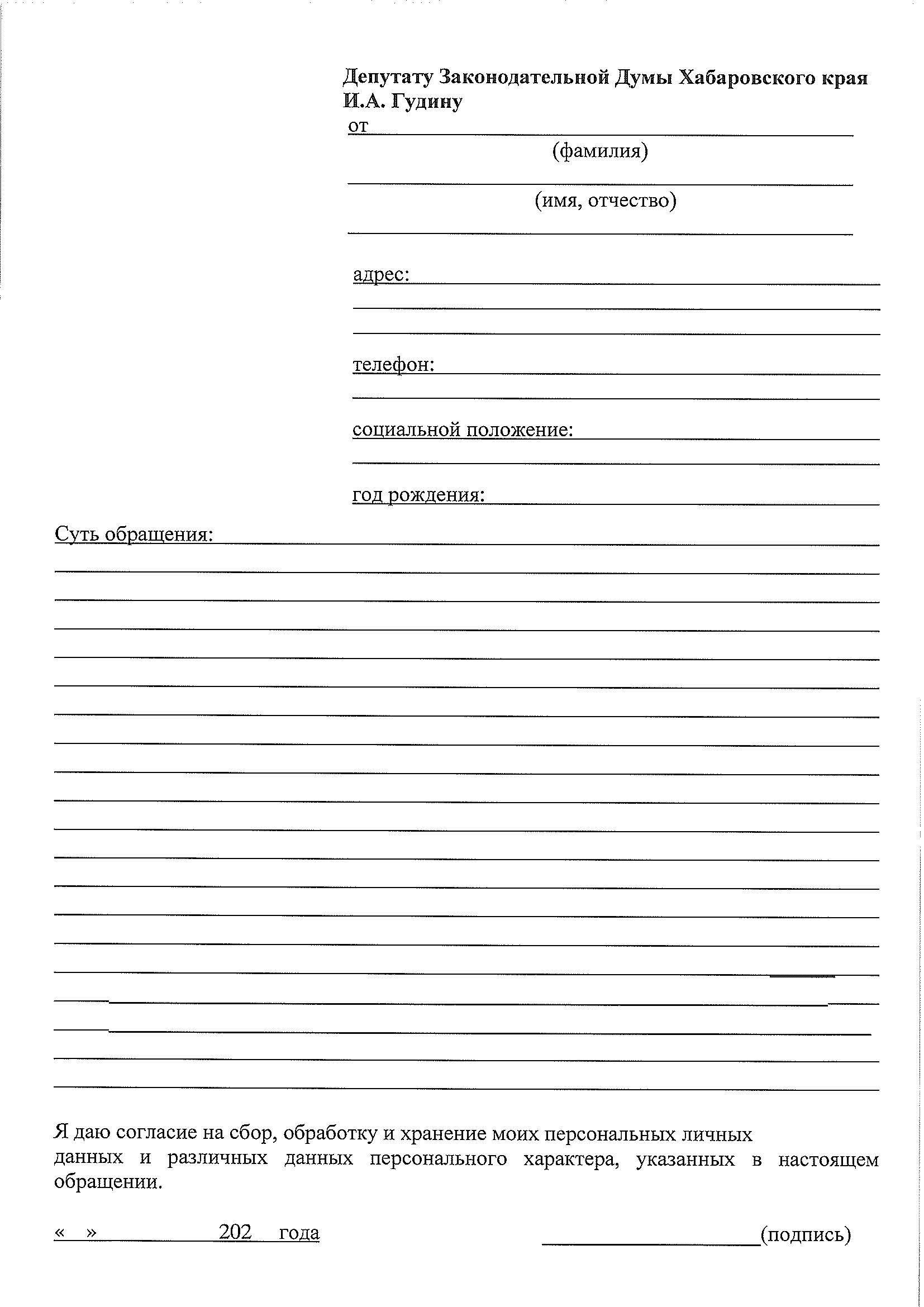 Уважаемые амурчане! Информируем Вас о том, что 14.10.2020 с 14-00 до 15-00 часов депутатом Законодательной Думы Хабаровского края Гудиным Игорем Ананьевичем будет проведен личный прием граждан. Место проведения приёма граждан – зал заседаний администрации городского поселения «Город Амурск» (пр. Комсомольский, 2а).