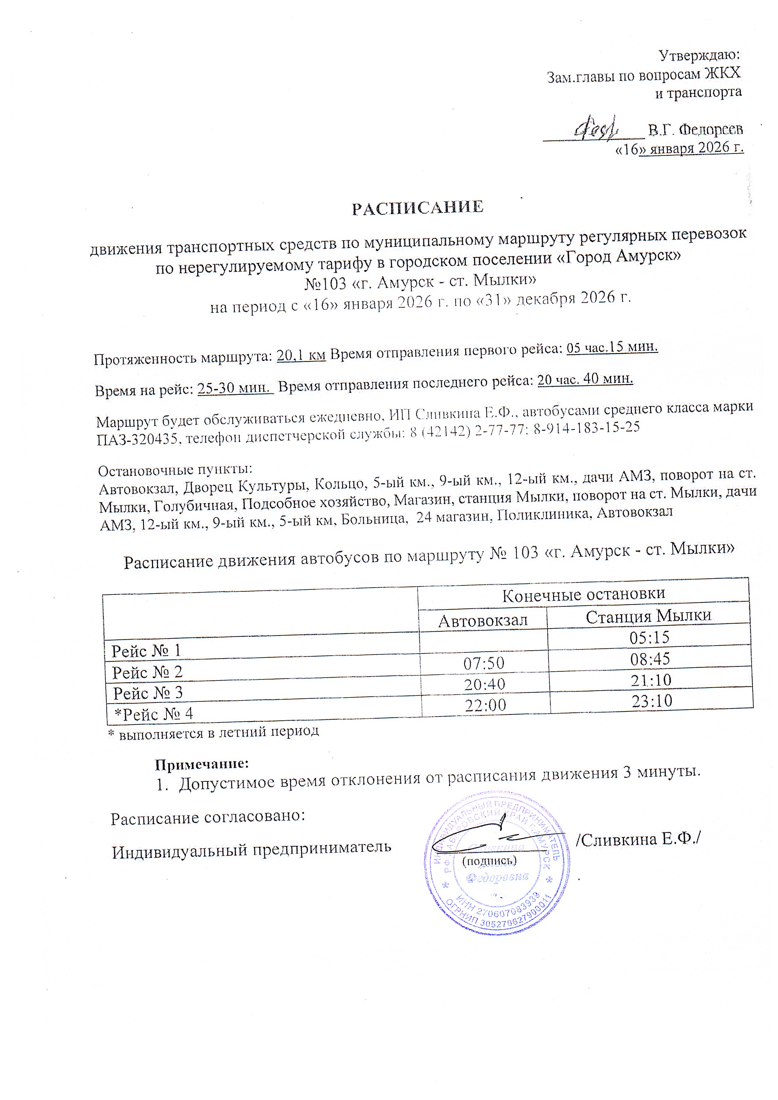 | Расписание движения транспортных средств по муниципальному маршруту регулярных перевозок в городском поселении «Город Амурск» |